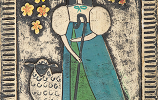 Experimenting with a new material, hydrostone, Evelyn creates a series of nursery rhyme bas-relief plaques and functional three-dimensional pieces.