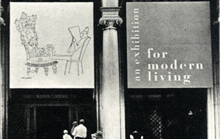 At the Detroit Institute of Art’s exhibition “For Modern Living,” organized by architect Alexander Girard, Evelyn and Jerome see the innovative contemporary designs of Ray and Charles Eames, George Nelson, V’soske, and others. They are inspired to pursue careers that combine their design and fine arts training.