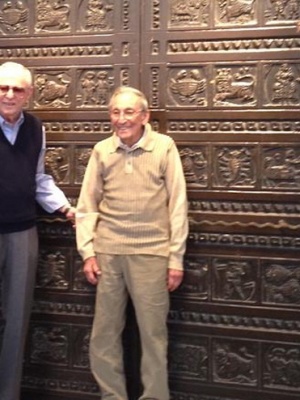Architect Don Wexler and Jerry Ackerman unveil Zodiac Panelcarve doors at Eisenhower Medical Center, Palm Springs.